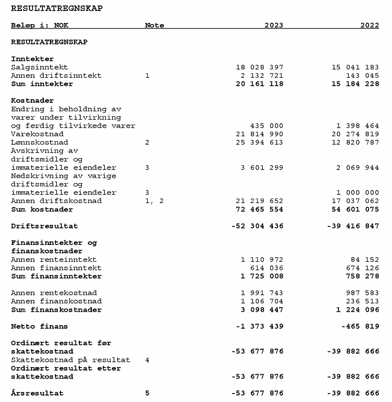 Note: “Inntekter” = revenue. 20,161,118 NOK = €1,741,586.