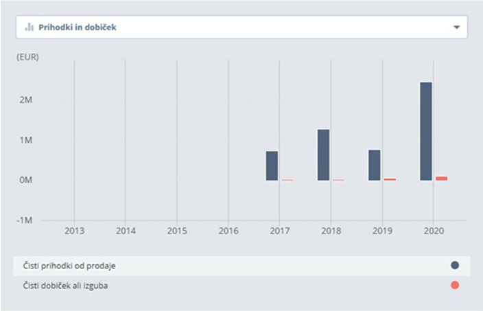 Note: “Prihodki od prodaje” = sales revenue, “Dobiček ali izguba” = profit or loss.