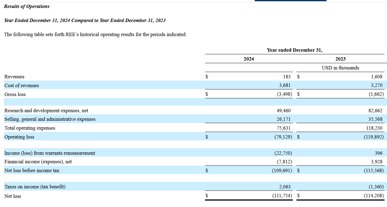 Moreover, REE’s filings do not directly mention how many batteries they bought from MVST. The statement that REE bought 300+ batteries from MVST is only found in MVST’s presentation. We are somewhat skeptical about this order because as of today, REE has only manufactured around 25 vehicles, mostly prototypes. Below is a screenshot of REE’s latest 10-K filing showing their results of operations.