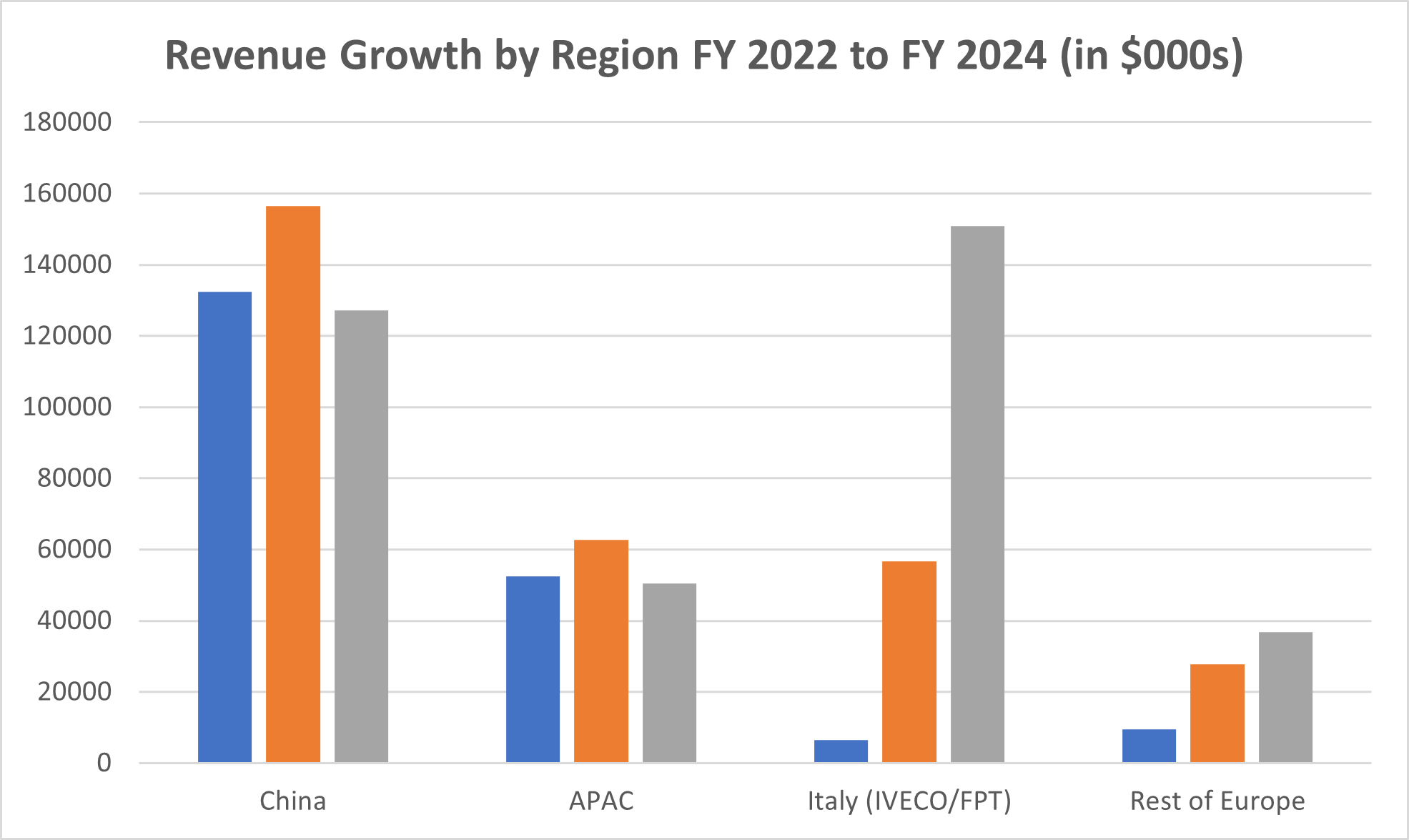 MVST trying to highlight new business and commercial wins is not a coincidence. To support its growth projections, MVST will need to onboard new clients and generate meaningful revenue from them. This is because its largest existing client is projecting a decline in sales for the coming year. According to MVST’s own disclosures, Iveco and its subsidiary FPT accounted for 40% of total revenue in 2024 and virtually all of the company’s revenue growth.