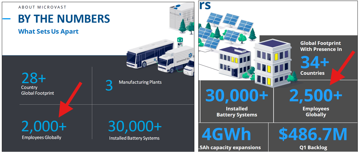 We found instances where MVST’s own disclosed employee count varied by over 25% in investor presentations that were issued mere days apart.