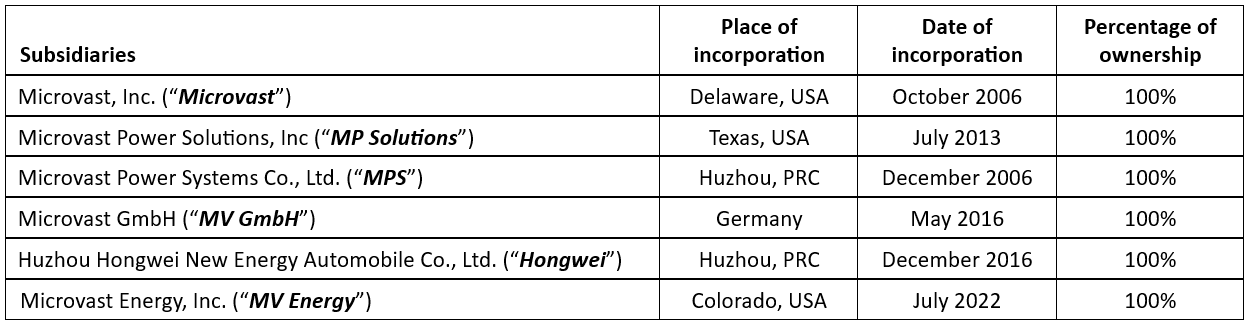 MVST’s current battery cell manufacturing capabilities are exclusively in China. MVST’s main Chinese subsidiary’s name is “Microvast Power Systems Co., Ltd. (“MPS”)”.