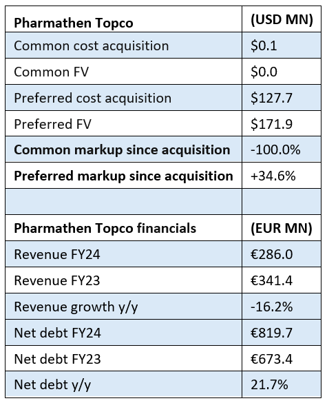 Pharmathen Topco – Common Written to $1; Preferred Marked Up