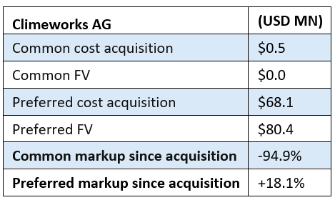 Climeworks AG – Common Written Down 95%; Preferred Still Marked Up 18%