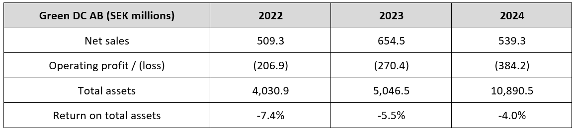 Green DC AB’s filed Swedish accounts show the underlying business going the other direction: