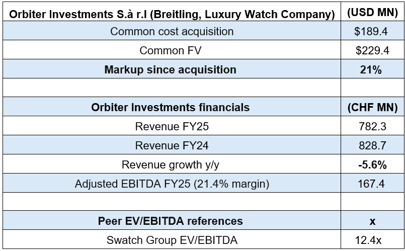 Orbiter Investments S.à r.l (Breitling, Luxury Watch Company) – Valuation Mark Not Consistent with Media Report and Rating Agency