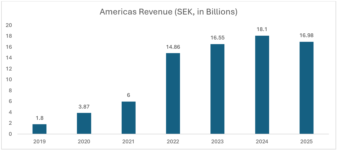 Looking at the segmented revenue, Americas revenue more than doubled from SEK 6 billion to SEK 14.8b in 2022, the first year Inteliquent’s financials were fully consolidated in Sinch’s financial results.